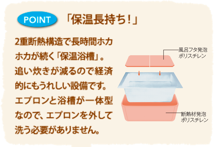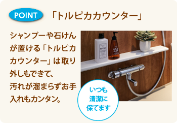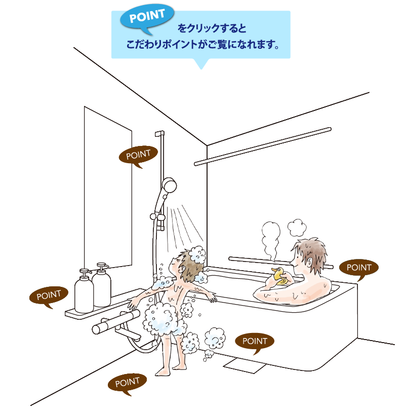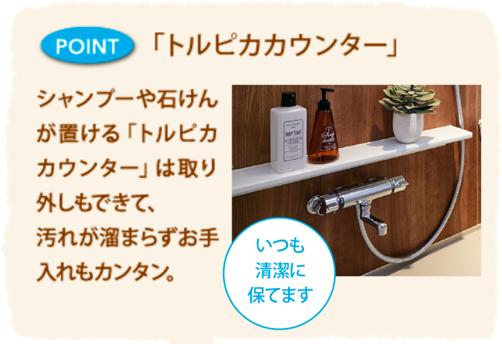 せっかくのお風呂タイムだから、心地良さをアップするための 便利さや清潔さにしっかりとこだわりました。