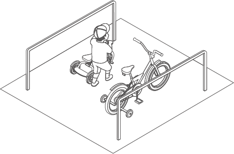 子どもが自分で自転車の出し入れができるよう、キッズ専用のスペースをご用意。