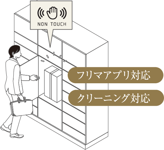 いつでも荷物が受取れ、発送もできる宅配ロッカーを共用部にご用意。着荷はエントランスで確認できます。荷物を受け取る際はボタンに触れずに操作ができます。 ※一部操作を除く