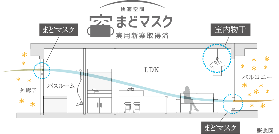 住戸の風の通り道にまどマスク&室内物干