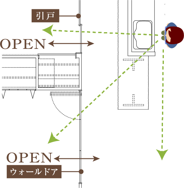 風通し良く暮らせることは「ピアキッチンプラン」の大きな魅力。湿気や匂いのこもりがちな水まわり空間を爽やかに保ちます。