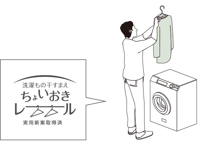 洗濯ものをレールに掛けて、一度にバルコニーへ運べます。