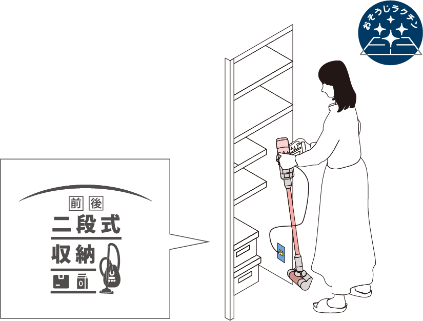 使用額度によって「手前と奥」に整理できるから、取り出しも楽々二段式収納。