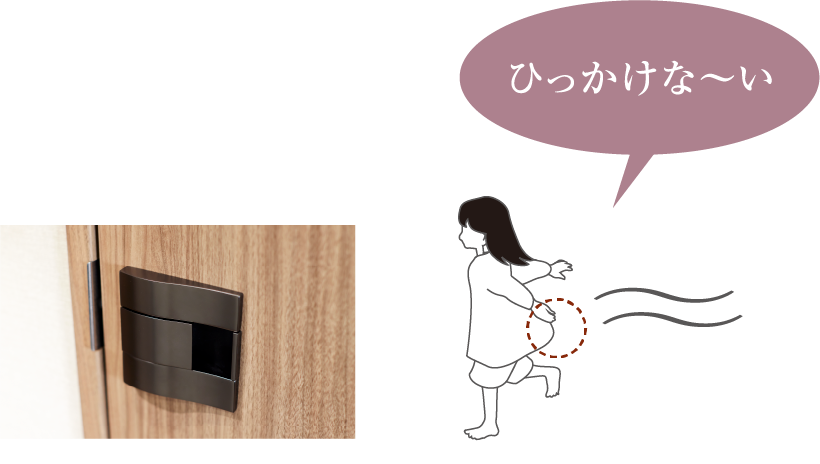 つまずき事故に配慮した薄型設計のドアストッパー採用。