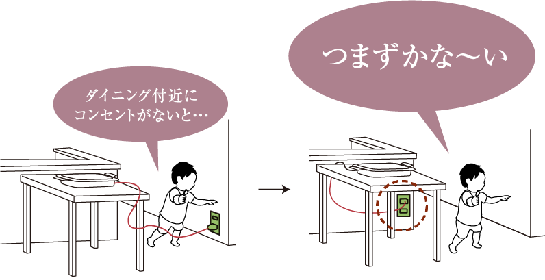 コードが通路をまたがず、つまづく心配がないように安全に配慮。