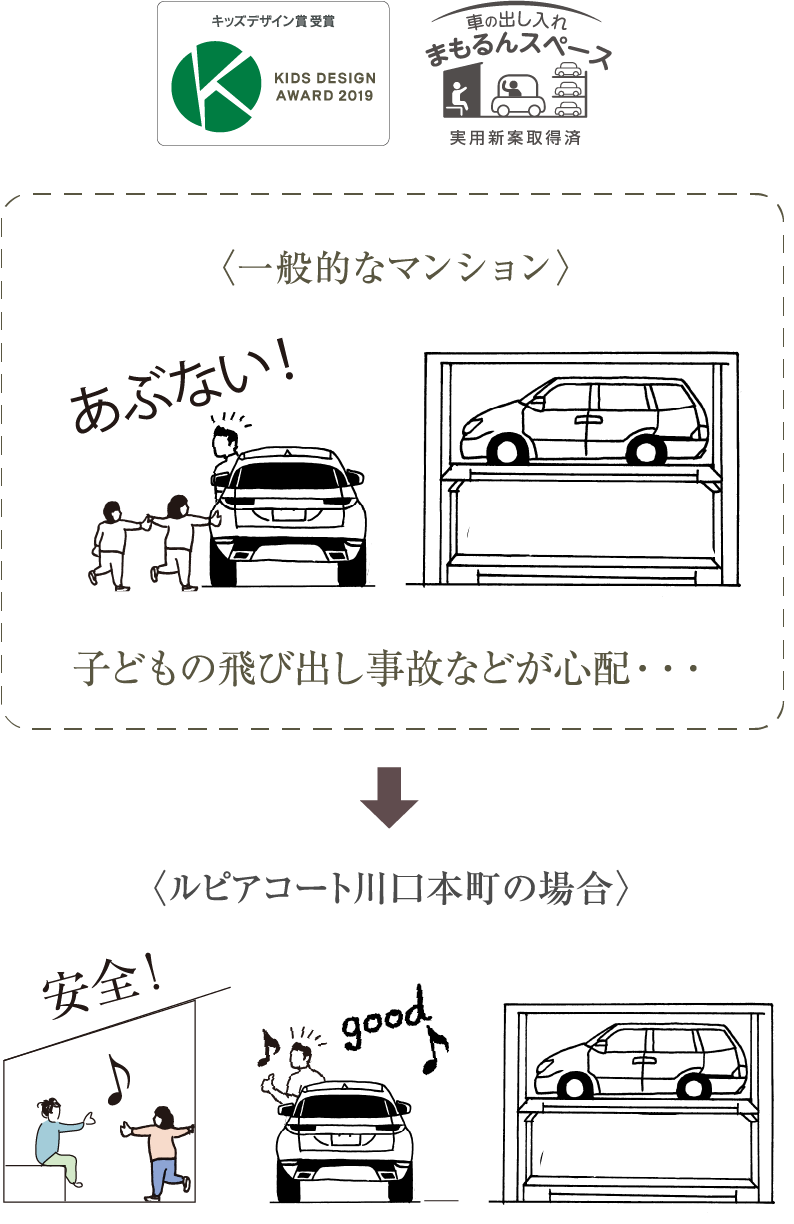 車を出し入れする間のお子さまのウェイテングスペース。外から施錠できて安心です。