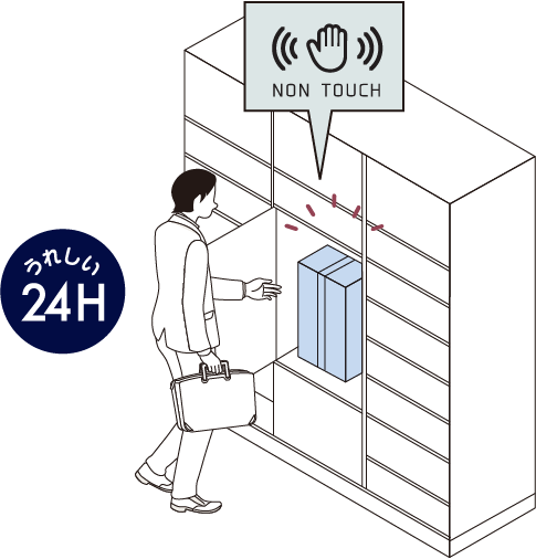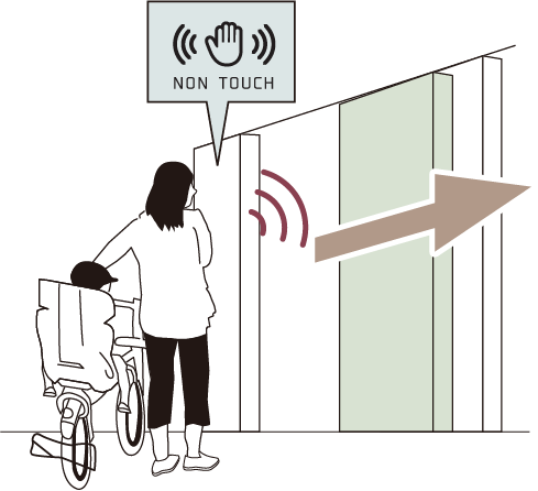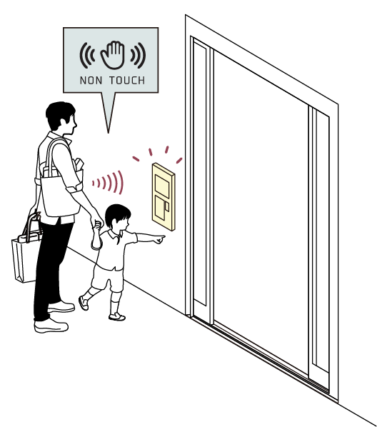 タッチレスキーシステムと連動ボタンや扉に触れずに取出し可能です。