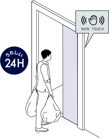 ゴミ置場には「自動ドア」を採用。ゴミの多い日もドアノブに触れずに出入りラクラクで清潔です。