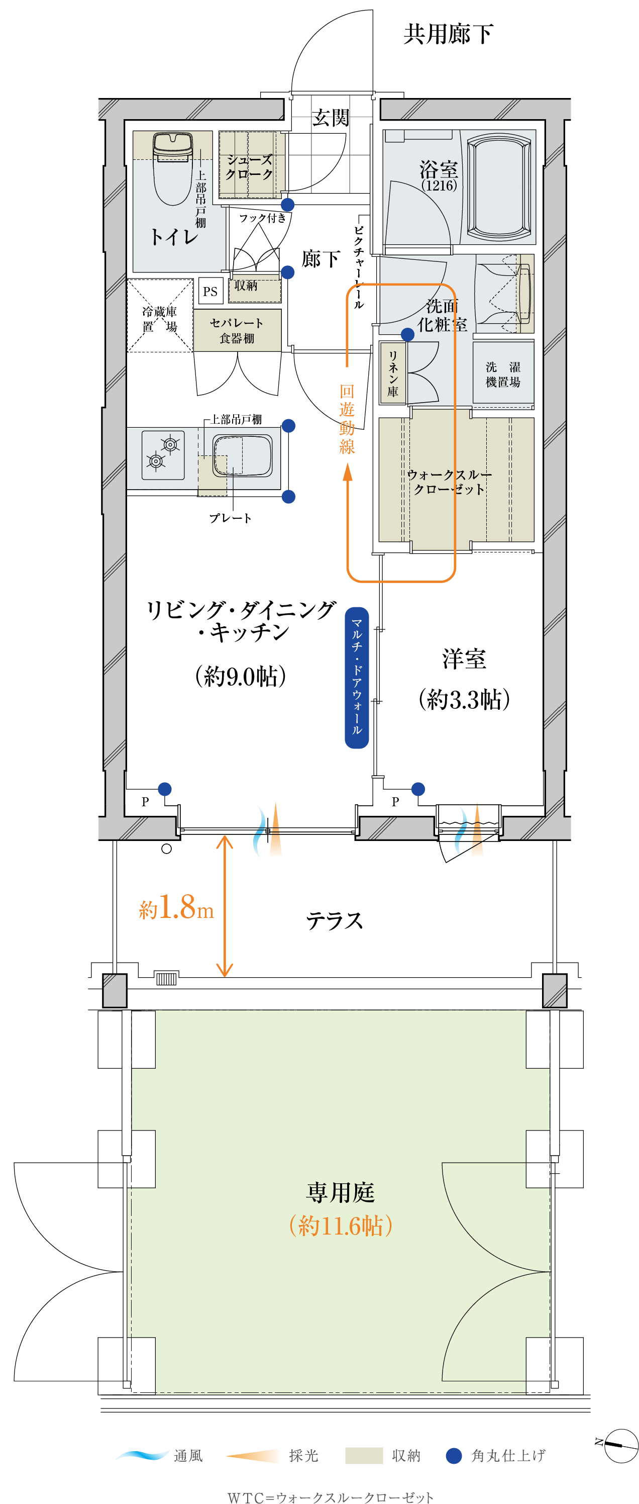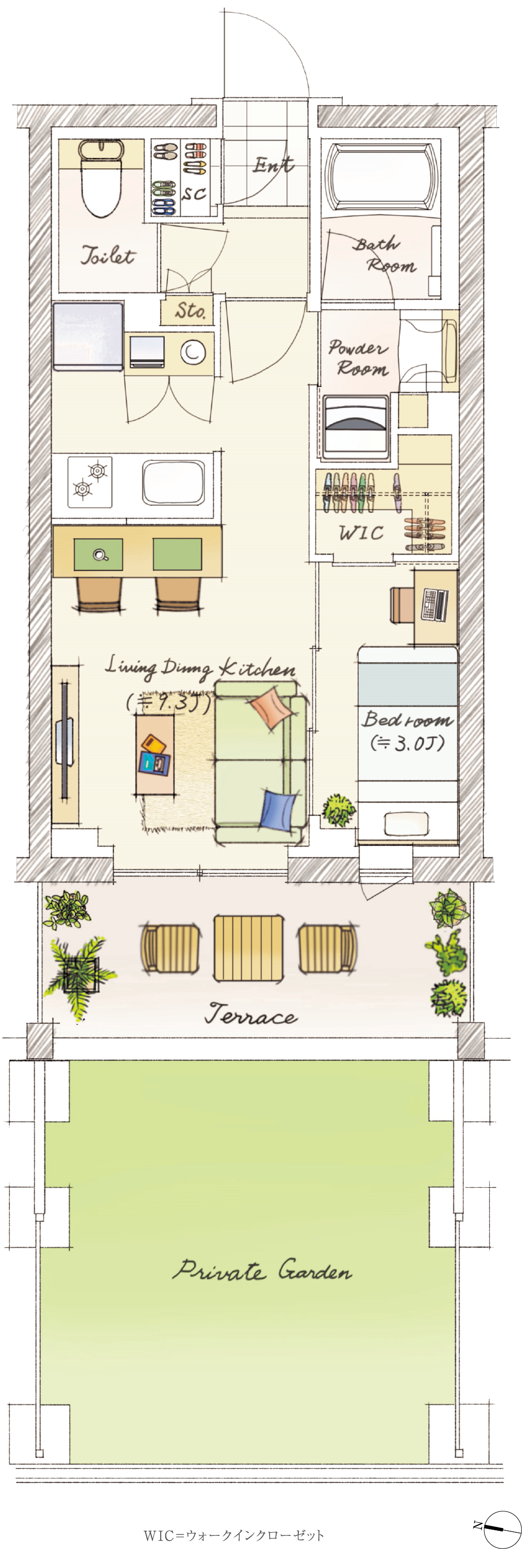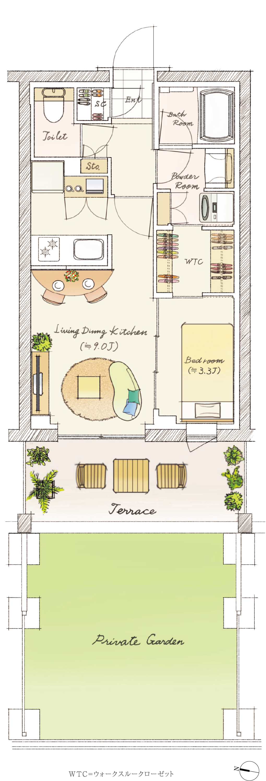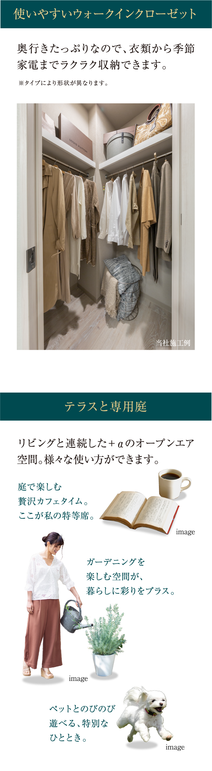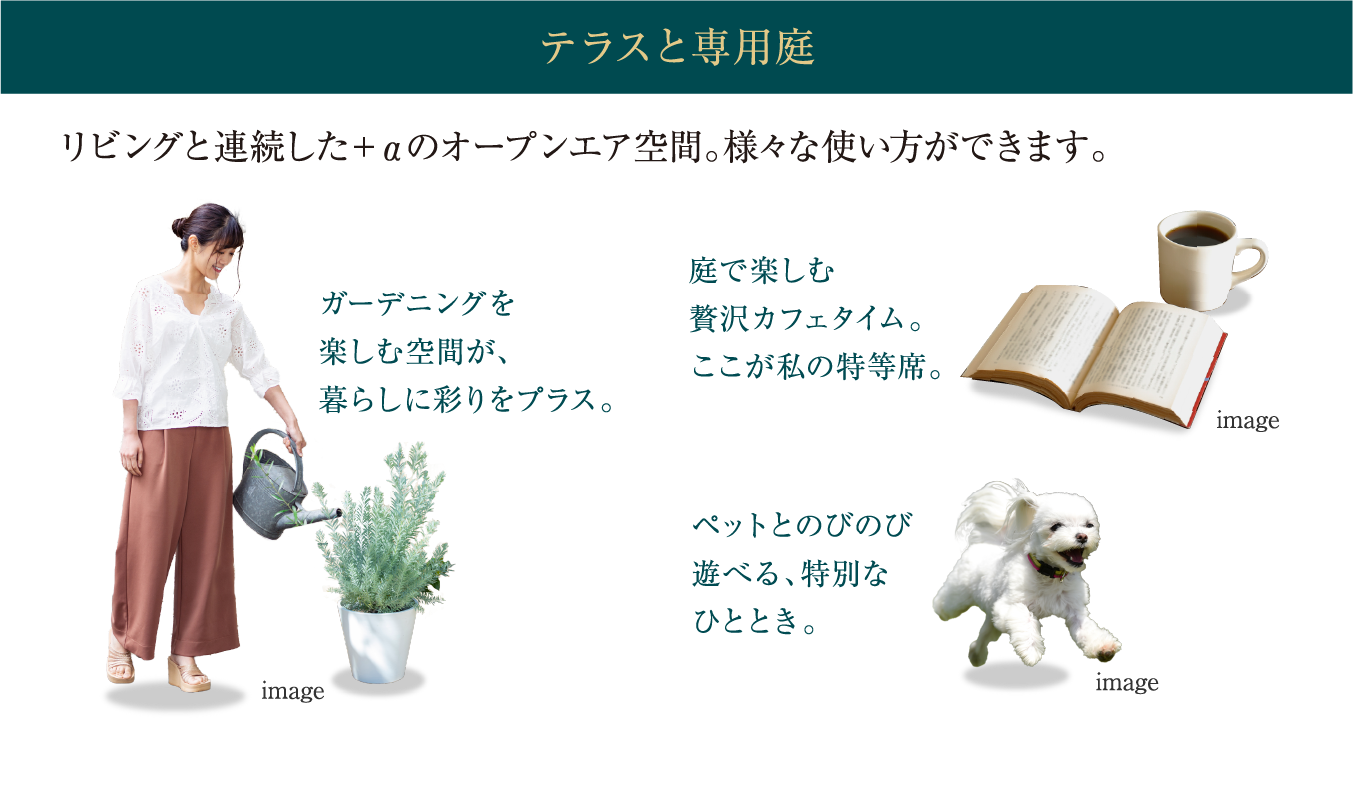 ゆったり使えるテラスと専用庭を設けた開放的なプランです。