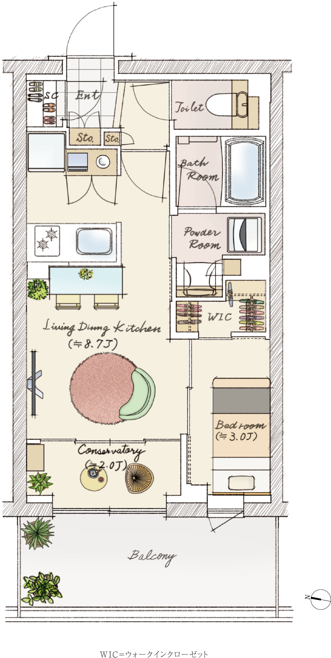 ※掲載の室内写真はモデルルーム(Gタイプ)を2024年9月に撮影したもので、家具・調度品等は価格に含まれておりません。※掲載のイラストは、全てイメージです。※掲載の間取りは計画段階のものであり、変更となる場合があります。タイプによって形状が異なります。