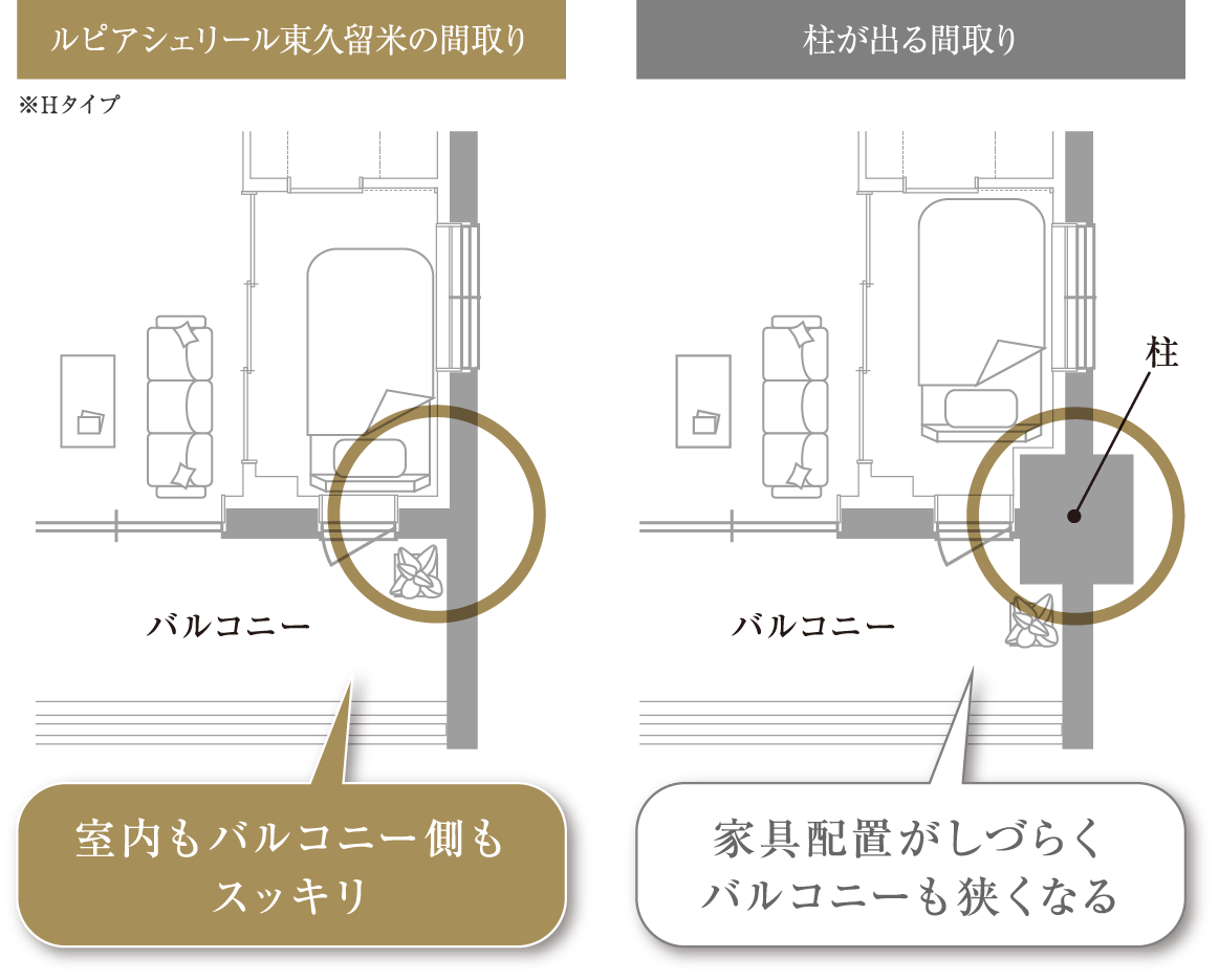 壁と床で支える壁式構造により、すっきりとした美しい空間を実現。柱がないため、家具の配置がしやすく、自由で効率的なレイアウトが可能です。