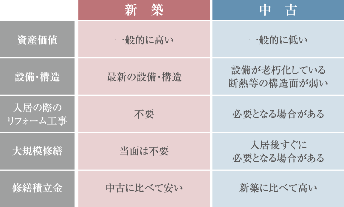 新築マンションのメリット (中古マンションと比較した場合)