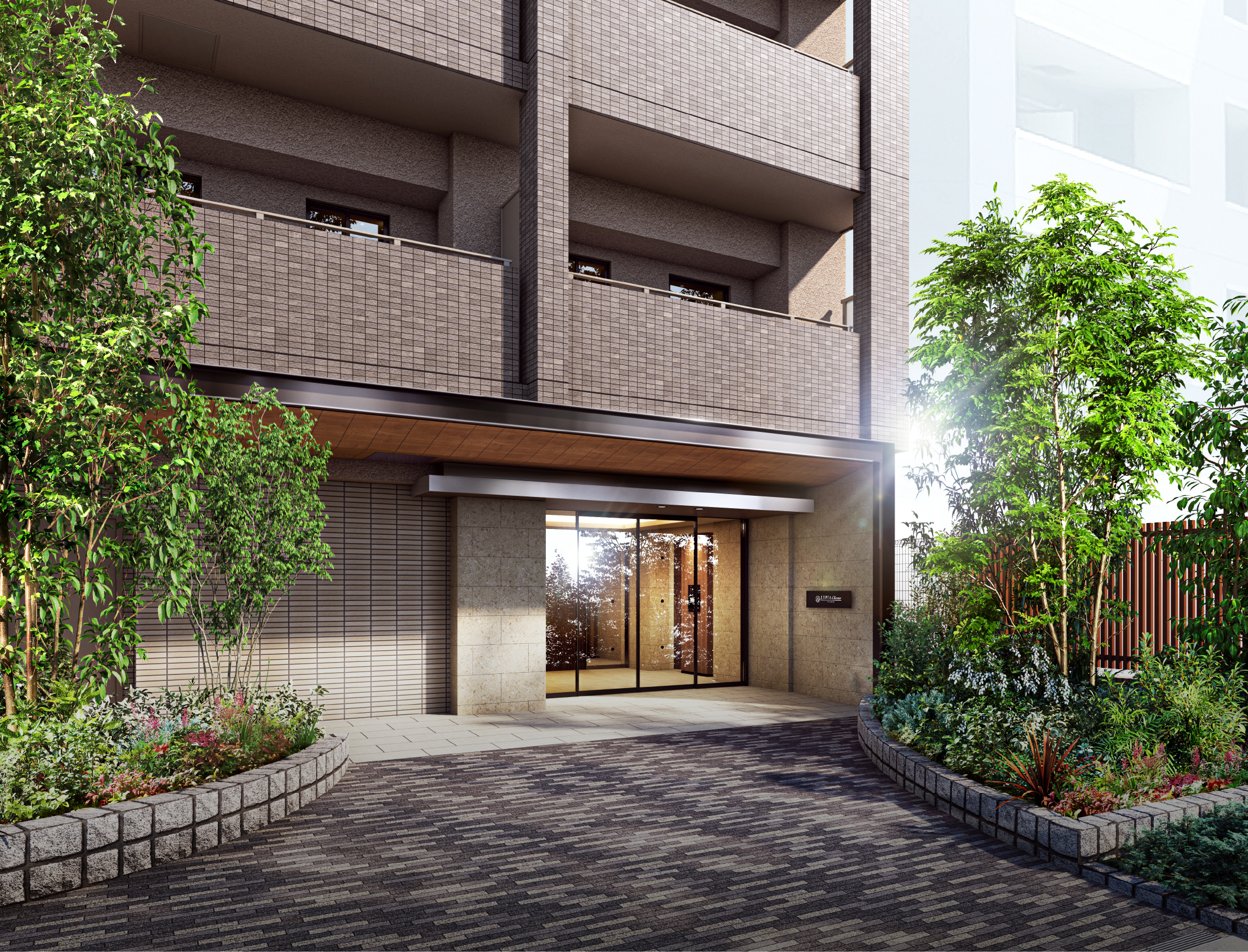 ※掲載の完成予想CGは計画段階の図面を基に描き起こしたもので、形状・色味等は実際と異なります。なお、外観・内装の形状の細部、フェンス、照明、排水設備、室外機、雨樋、換気口、点検口、避難ハッチ等の設備機器、及び電線は一部表現を省略または簡略化しております。※掲載の共用空間イメージイラストは、計画段階の図面を基に作成したイメージです。実際とは多少異なります。