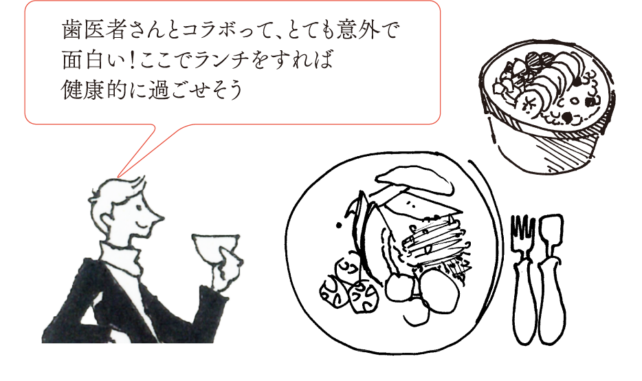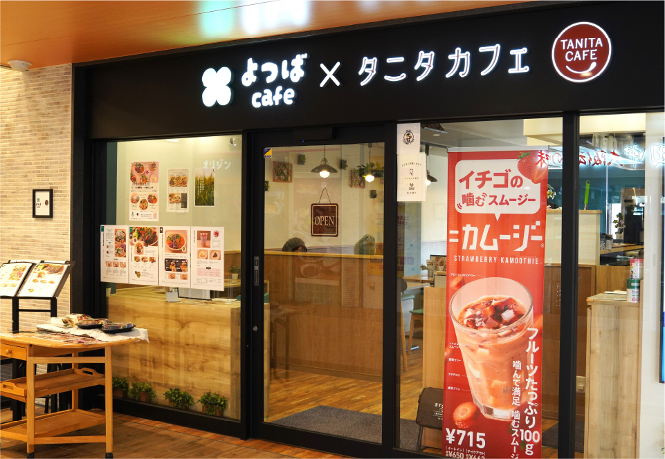 「よつばcafe×タニタカフェ八潮」は、健康と笑顔をつなぐ新しいライフスタイルを、一緒に創っていく場。食を楽しみながら健康も手に入れる、そんな安らぎの時間を提供出来る場所です。運営は地域の総合歯科「今井歯科」と、健康総合企業「タニタ」によるコラボレーション。管理栄養士監修のメニューを中心に、栄養バランスと咀嚼力を考慮した食事をご用意しています。