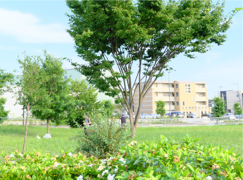 平成27年4月に開園した、約1.4haの面積を有する駅前公園です。園内中央には、シンボルとなる築山があり、子供たちがのびのび遊べる場所になっています。7つの広場はイベント会場や防災としても役割を担う、市民の憩いの空間です。
