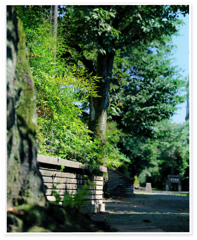 大原公園南にある総延長約342mの緑道です。大原中学校から文化スポーツセンターにつながる遊歩道。春には、遊歩道に連なる桜が華やかで、地元の人々の眼を楽しませてくれます。