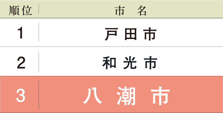 財政健全度ランキングは、都市の財政状態について、収支、弾力性、財政力、財政基盤、将来負担の5つの視点から、全国1,741市町村を対象に市と町村の区分ごとに順位を算出したものです。八潮市は2025年で埼玉県内第3位に。全国29位となっています。