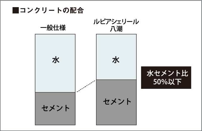 コンクリートは、セメント、砂、砂利、水を混ぜて作られます。水がなければこれらの材料は混ざりませんが、水はコンクリートの硬化後に蒸発するため、コンクリートにひびわれを生じさせます。ひびわれを少なくするために、水量を抑える必要があるので、基準を定めています。 ※杭は除く