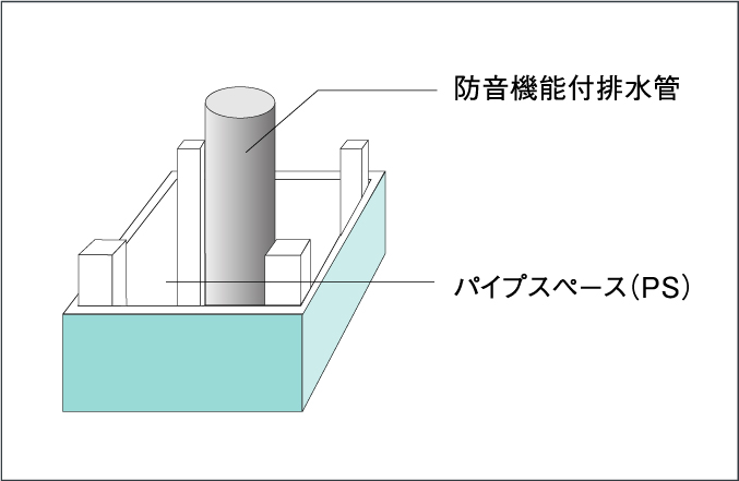 トイレ・洗面化粧室・浴室・キッチンなどの排水竪管には、遮音性能を備えた管を使用することで防音効果を高めています。