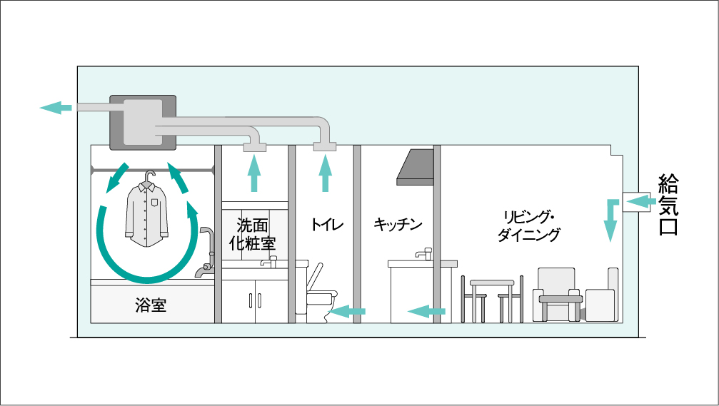 気密性の高いマンションでは、知らないうちにイヤな臭いがこもったり空気がよどんだりする場合があります。そこで各居室に付けた自然給気口から、住戸内に新鮮な空気を取り入れると同時に汚れた空気を排出する24時間低風量換気システムを搭載。換気設備は2時間で居室体積分の換気量が確保できるものを設置しております。また、ホコリを入りにくくするフィルターを給気口に装備しています。