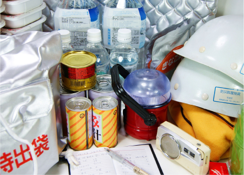 万一の災害に備えて、エントランス階に防災倉庫をご用意。発電機・ラジオ・ライトや乾電池、救急箱などの防災グッズを保管しています。