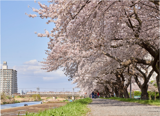 - 埼玉県、東京都を流れる一級河川。カワセミやアオサギなど多くの野鳥が生息しています。 (自転車7分 約1,550m)