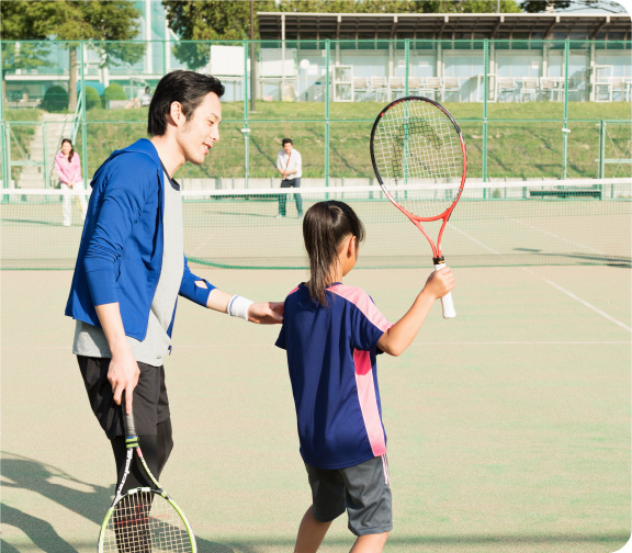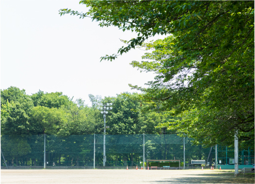 テニスコートやグラウンドが近所にあるので、やりたいと思ったその日に、気軽に家族でスポーツができます。