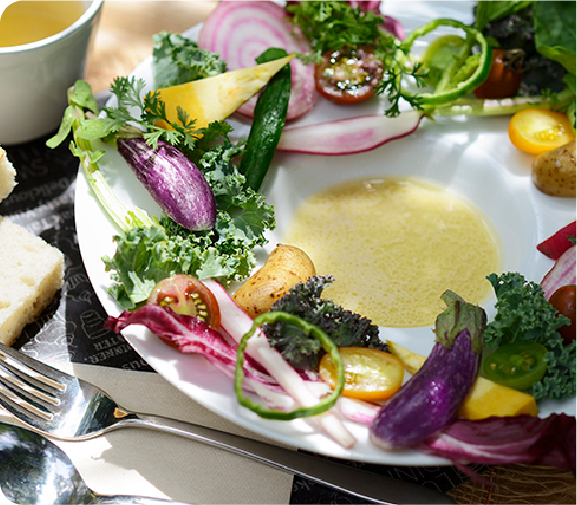 - みよし野菜や富の川越いも、自家農園産のハーブ等を使った本格的な南イタリア料理が楽しめる農園レストラン。 (自転車 15分/約3,720m)