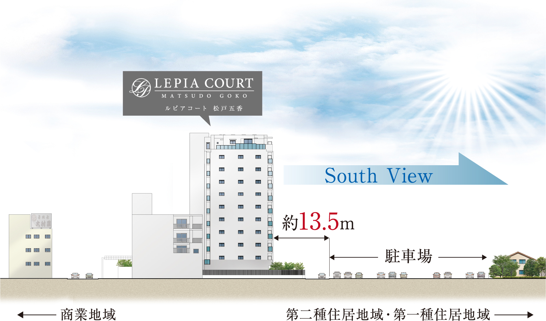 隣接道路含め約13.5m以上の