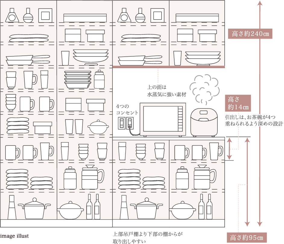 高さ約17cmあり、大きなボウルなども収納できます。