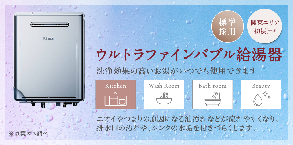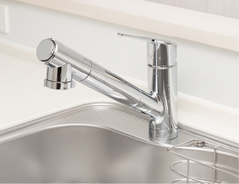 クリック感のある節水型水栓を採用。お湯を節約しガスの無駄遣いを予防。