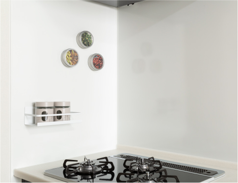 汚れにくくお手入れしやすいホーロー製。好きな位置に調理器具などをレイアウトできるマグネット対応です。