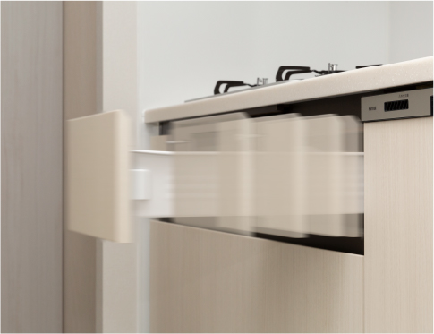 軽く押すだけで、やさしく静かに閉まるので中の食器などを傷めません。