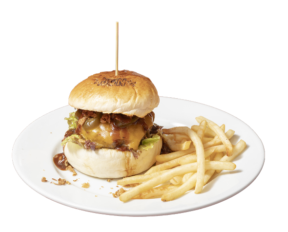 食材にも内装にもこだわりが詰まっていますね。うちのハンバーガーは、アメリカンビーフ100%のパティですが、お店でブロックから引いて手作りしていて、冷めても美味しいですよ。分厚いパティから肉汁がしたたり、肉のうま味を感じていただけるはずです。アメリカンシェイクも、本場の味とボリュームにこだわりました。ポテトは牛脂で揚げているので冷めてもサクサクの状態です。