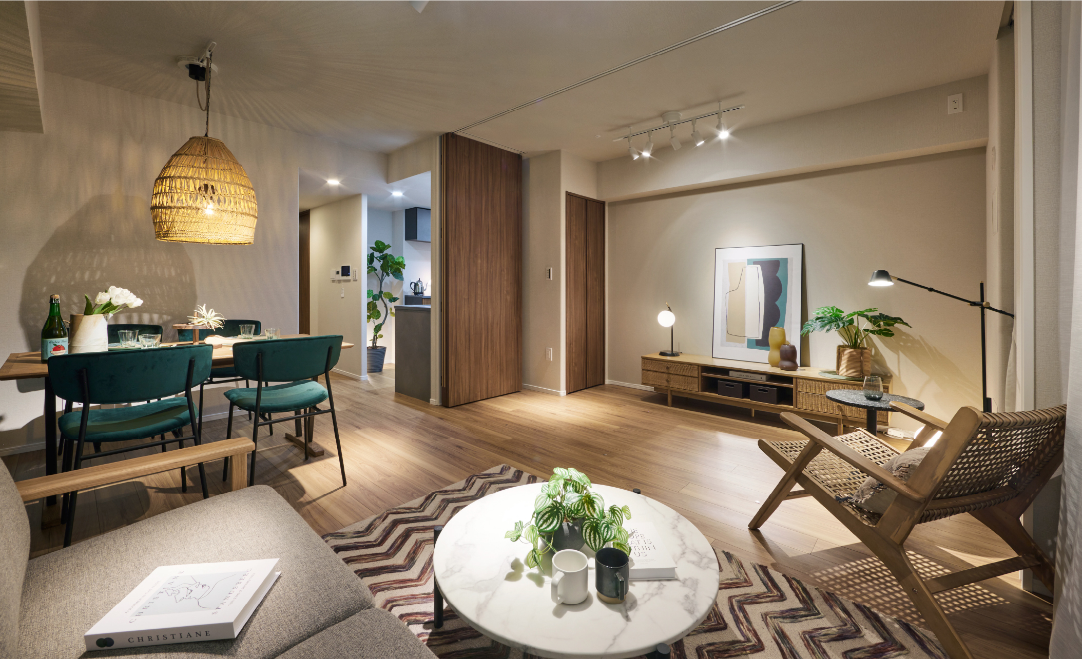 ※掲載の写真は2025年9月に建物内モデルルーム (Bタイプ:1302号室)を撮影したものです。家具・調度品は販売価格に含まれません。また一部オプション(有償)が写真に含まれております。タイプにより形状が異なります。※掲載の眺望写真は2025年9月にBタイプ:1302号室から撮影したもので、眺望・周辺環境は変わる可能性があり、将来にわたって保証されるものではありません。